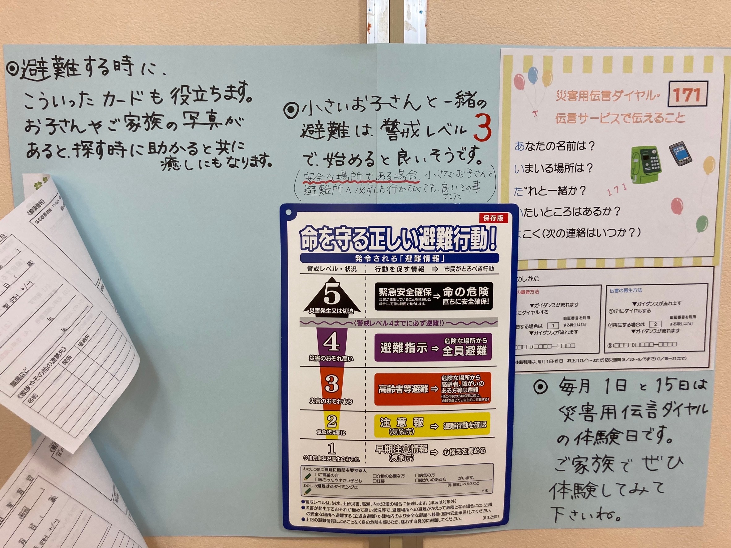 ...後日、てけてけぶーさんから、素敵なご報告が。 こどもらんどへ訪れる方へ「ママと赤ちゃんの防災講座」の振り返りのポスターを掲示して下さったそうです。少しでも多くの方々に知っていただきたい。そんな優しい思いが溢れたこどもらんどさんです。